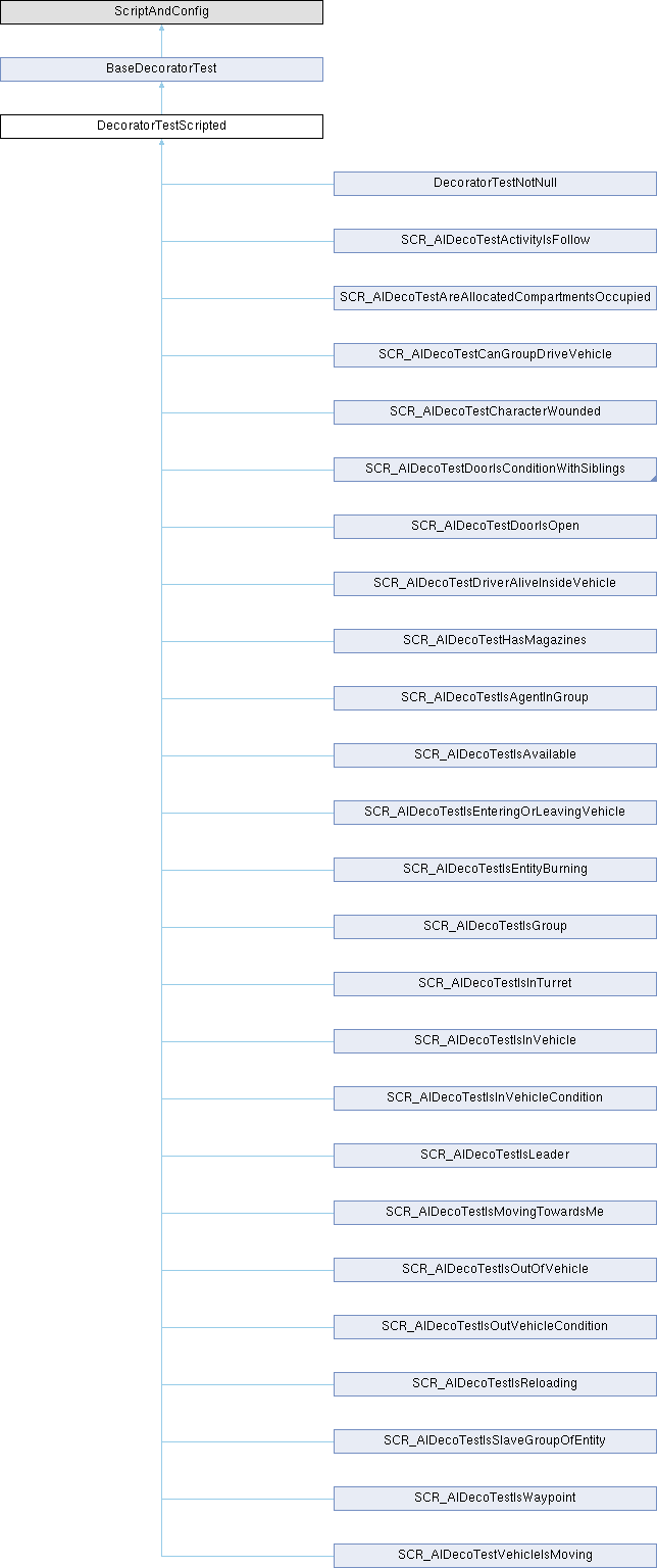 Implemented in DecoratorTestNotNull, SCR_AIDecoTestActivityIsFollow, SCR_AIDecoTestAreAllocatedCompartmentsOccupied, SCR_AIDecoTestCanGroupDriveVehicle, SCR_AIDecoTestCharacterWounded, SCR_AIDecoTestDoorIsConditionWithSiblings, SCR_AIDecoTestDoorIsOpen, SCR_AIDecoTestDriverAliveInsideVehicle, SCR_AIDecoTestHasMagazines, SCR_AIDecoTestIsAgentInGroup, SCR_AIDecoTestIsAvailable, SCR_AIDecoTestIsEnteringOrLeavingVehicle, SCR_AIDecoTestIsEntityBurning, SCR_AIDecoTestIsGroup, SCR_AIDecoTestIsInTurret, SCR_AIDecoTestIsInVehicle, SCR_AIDecoTestIsInVehicleCondition, SCR_AIDecoTestIsLeader, SCR_AIDecoTestIsMovingTowardsMe, SCR_AIDecoTestIsOutOfVehicle, SCR_AIDecoTestIsOutVehicleCondition, SCR_AIDecoTestIsReloading, SCR_AIDecoTestIsSlaveGroupOfEntity, SCR_AIDecoTestIsWaypoint, and SCR_AIDecoTestVehicleIsMoving.